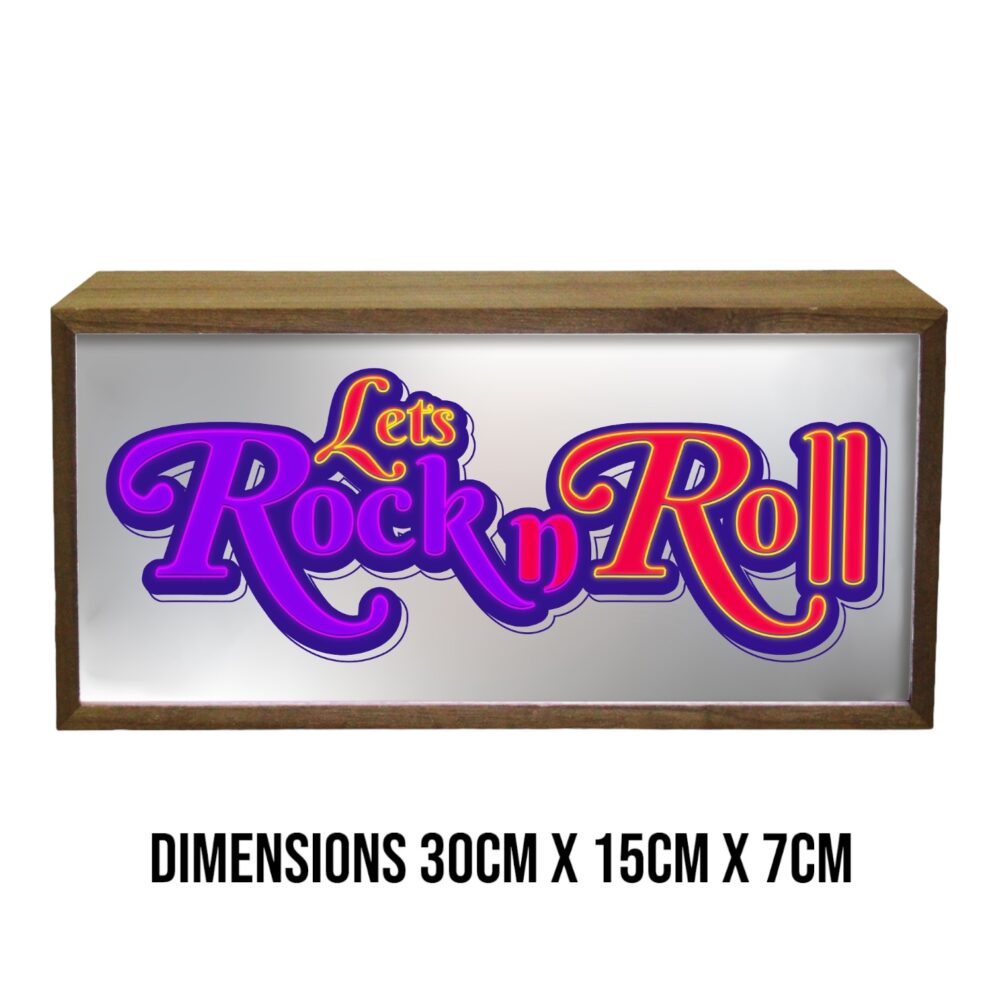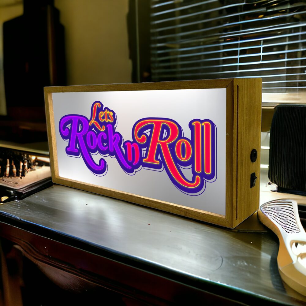 Light Box Home Let’s Rock N Roll is a dynamic illuminated LED room sign designed for rock music enthusiasts. Measuring 300 mm wide, 150 mm tall, and 70 mm deep, this rock n roll decor light box showcases a retro rock design that adds a bold, energetic touch to any space. Its bright LED lighting makes it a striking piece of wall art, perfect for creating a lively and vibrant atmosphere in the rooms of rock music fans. The sign is portable and versatile, capable of being powered by either batteries or a USB connection, which allows for flexible placement and easy integration into various home settings. As an accent lighting piece, the Light Box Home Let’s Rock N Roll combines aesthetic appeal with practical function, making it an ideal addition for those who love to celebrate the spirit of rock music in their home decor.