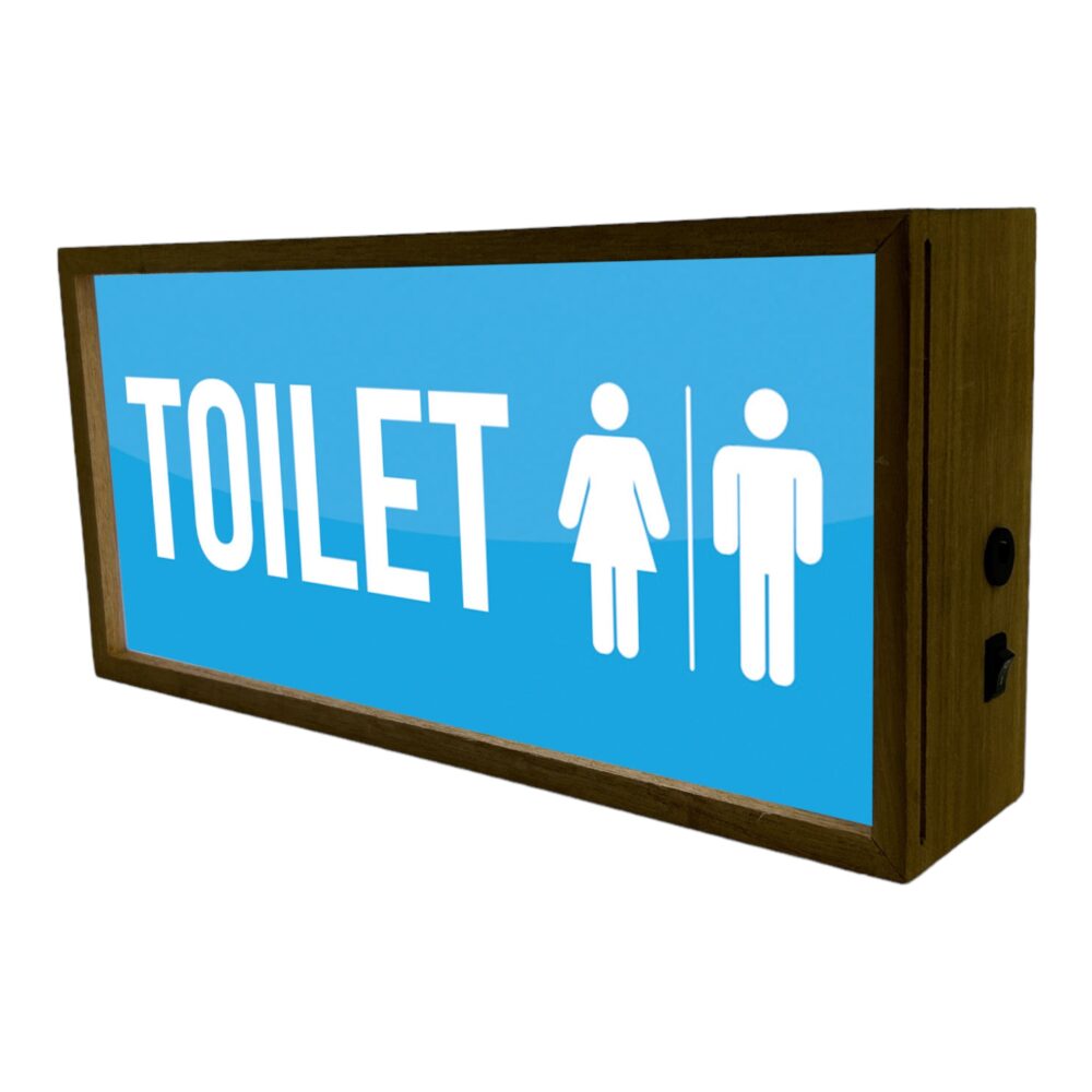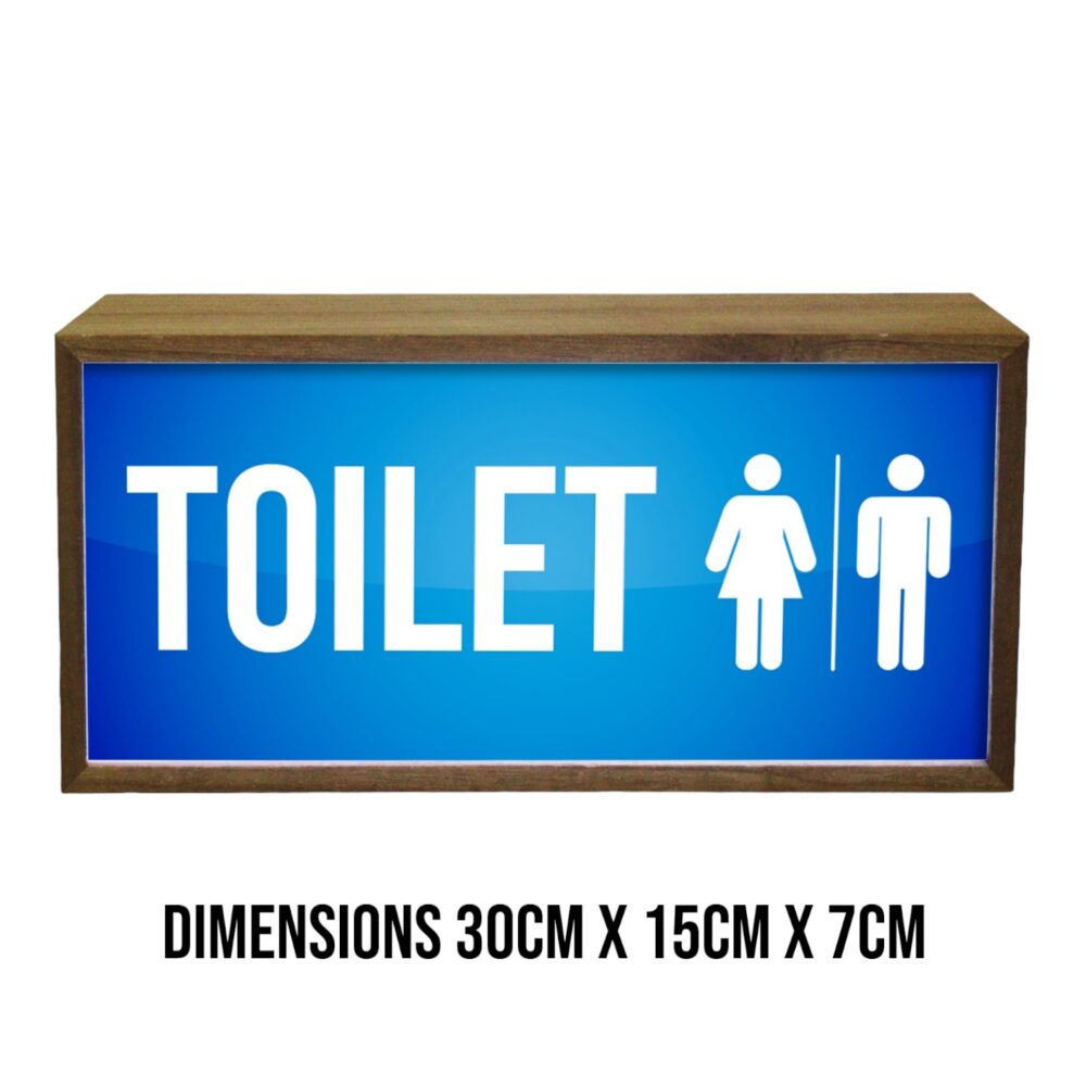 Light Box Toilet Male Female Sign is a sleek and modern illuminated LED bathroom sign designed for commercial workplaces and workspaces. Measuring 300 mm wide, 150 mm tall, and 70 mm deep, this light box provides clear and easily identifiable restroom indicators. Its illuminated design ensures high visibility, making it easy to locate restrooms even in low-light environments. The signage is versatile, offering dual power options: it can be powered by batteries or via USB, ensuring flexible installation. This unisex toilet sign blue light box not only enhances the aesthetic appeal of any workspace but also ensures functional clarity with its distinct and legible visual design.