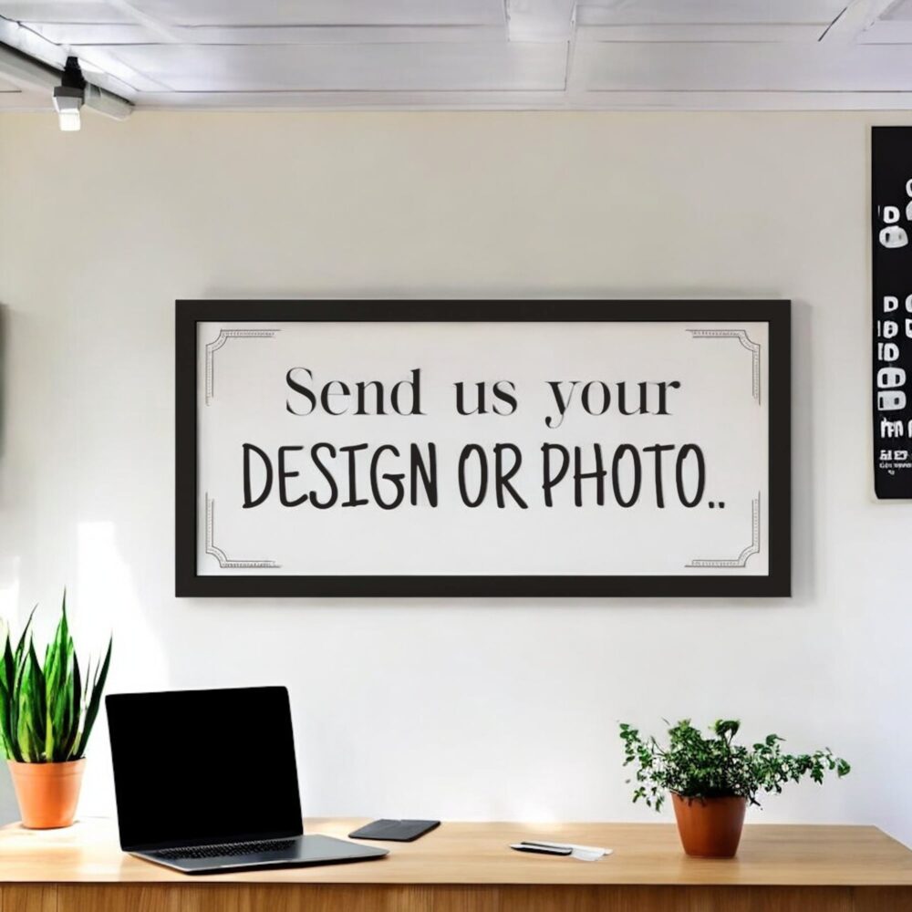 With the option to upload your own logo or design, this personalised signage offers a clean and modern solution for brand visibility. The rectangular landscape layout is available in black or white wooden frames, ensuring it complements a variety of decor styles and environments.