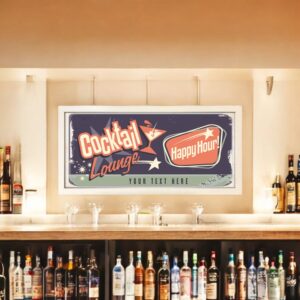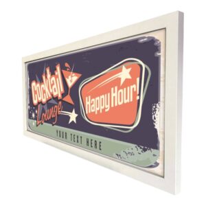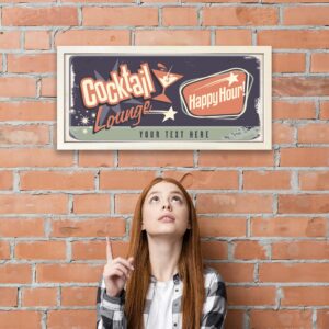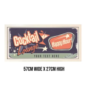 Featuring an eye-catching cocktail lounge theme and custom text, you can personalise your sign with your own bar name or message, making it truly one-of-a-kind. Whether you’re entertaining guests or just enjoying a relaxed evening drink, this bespoke sign sets the tone with its colourful design and mixology-inspired aesthetic.
